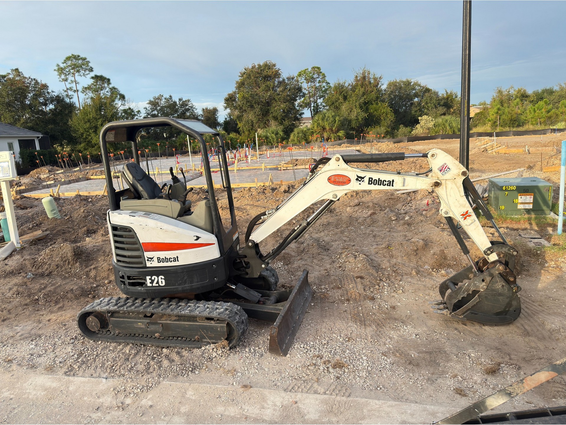 Compact excavators like the Bobcat E26 are commonly used for trenching utilities, digging foundations, drainage installation, land clearing, grading, and landscaping preparation. Contractors and property owners also rely on excavators for tree removal preparation, fence installation, storm cleanup, and construction site excavation. Their compact size and strong hydraulic power allow them to perform a wide range of digging and lifting tasks while working in areas where larger construction equipment would be difficult to operate.
