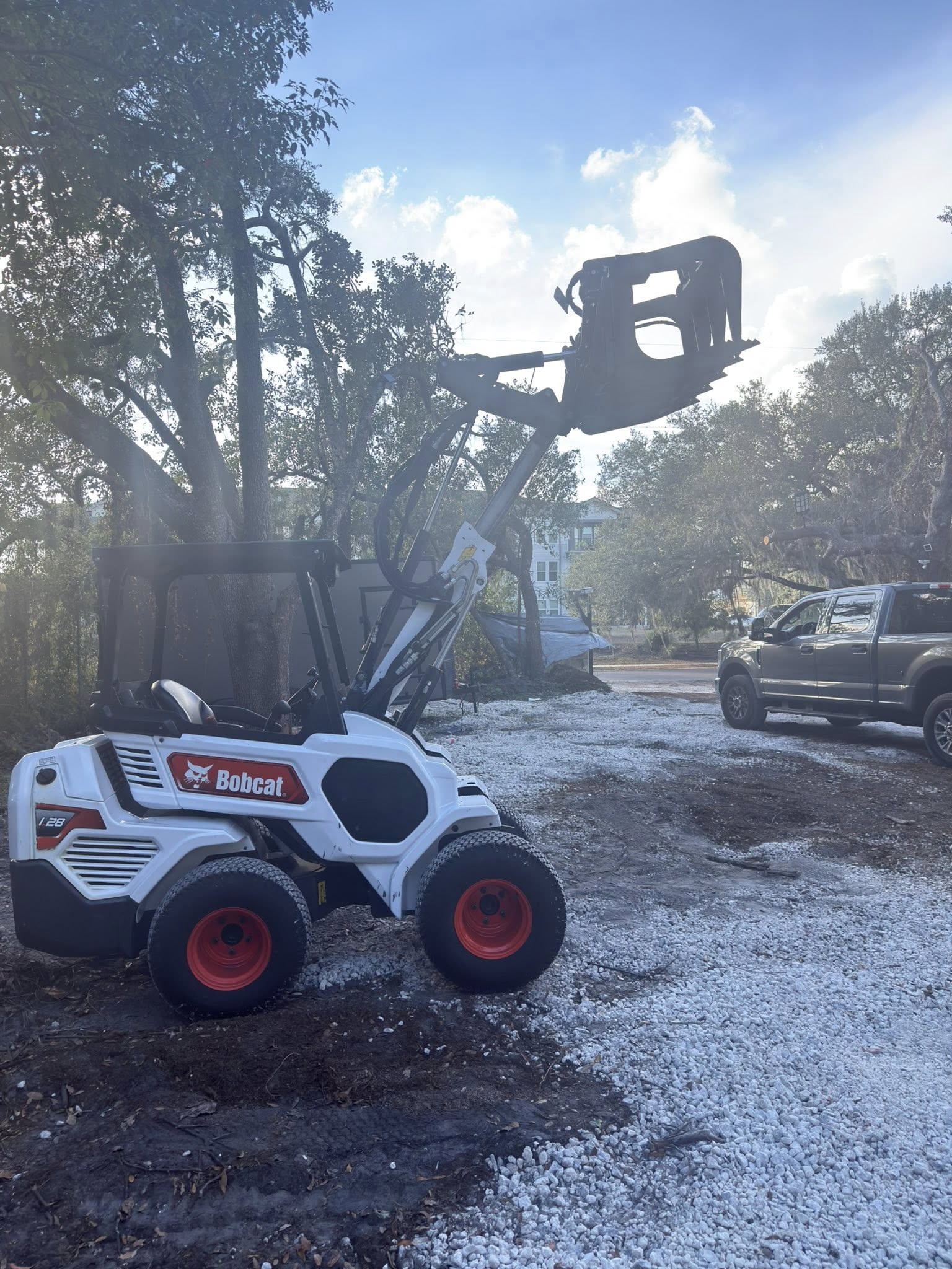 Book Yours TODAY!Haul Yeah’s articulating loaders are designed to deliver powerful lifting performance while remaining compact and easy to maneuver on tight job sites across Tampa and Central Florida. Our fleet features the Bobcat L28 articulating loader, a versatile machine built for landscaping, material handling, construction cleanup, and property improvement projects. With its articulated steering design, the L28 pivots at the center of the machine, allowing operators to move efficiently through confined areas without damaging surrounding surfaces. This design also helps maintain excellent traction and stability while carrying loads or operating on uneven terrain.