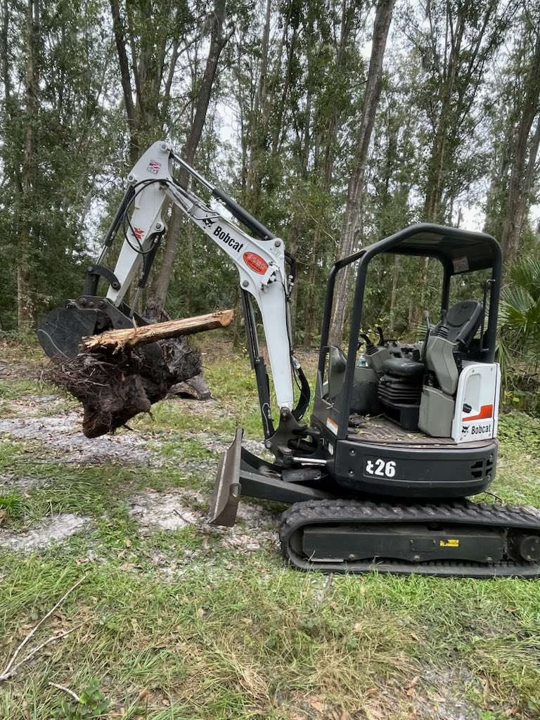Book Yours TODAY!Haul Yeah excavators feature the Bobcat E26 compact excavator, a versatile machine designed for digging, trenching, landscaping, and construction work across Tampa and Central Florida. The E26 is powered by a 24.8-horsepower Tier 4 diesel engine and has an operating weight of approximately 6,489 pounds, delivering strong performance while remaining compact enough for residential access areas and confined job sites. Its durable tracked undercarriage provides excellent traction and stability on uneven terrain, while smooth hydraulic controls allow operators to work efficiently when digging foundations, trenches, or drainage lines.